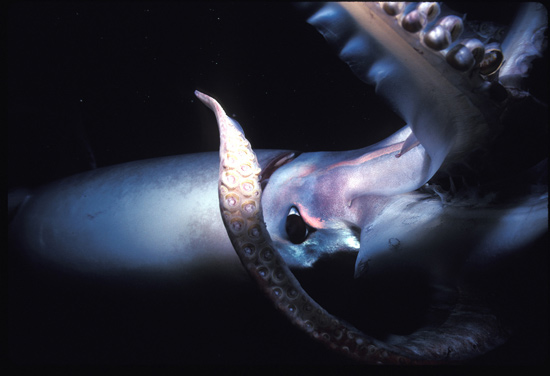 大王乌贼是软体动物中最高等的种类,它们的眼睛酷似人类眼睛。它有10条手臂,全身展开时长度达65英尺。人们经常将它们和大章鱼混为一谈,其实章鱼只有在受到威胁时才会攻击人类,而大王乌贼却是一种食肉猛兽。1941年3月25日,英国轮船"布列塔尼亚号"在大西洋上沉没,正当十几位幸存者抓住一艘救生艇时,水里出现一只大王乌贼,它伸出长长的手臂,缠住1人的身体,将他拖进水底。雄性大王乌贼在交配后偶尔会将雌乌贼吃掉。