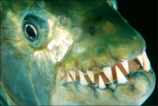 虽然还未证实过虎鱼杀人的报道, 但是南非东北部河网区的观察人员经常听说,土著在虎鱼出没的水中洗澡时,手指、脚趾或身上的肉被虎鱼咬掉。虎鱼有好几种,其中个头最大的长24英寸。它们的上下颚短而有力,牙齿尖而锐利,血腥味对它们具有极大的吸引力。一群虎鱼能在5分钟内将一条受伤鳄鱼身上的肉全部撕光,不过,平时虎鱼的行动却是懒懒散散的。