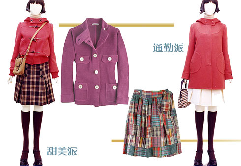 圆润的线条感造就出饱满丰盈的可爱形象,搭配简单硬朗直线型褶裙达到对比效果。
