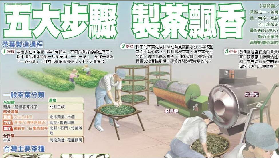 製茶主要分為採摘、萎凋、炒菁、揉捻、乾燥等步驟,任何環節出錯,都會影響茶葉的香氣、口味等,也因為過程需要大量人工,格外辛苦。