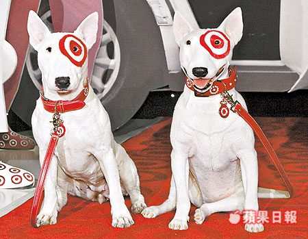 左邊這隻活生生的牛頭 名叫「標靶」,是美國零售大賣場Target的招牌狗,亮相時還要在眼部畫上商店標誌,紐約的杜莎夫人蠟像館前天起展示牠的蠟像分身(右)。