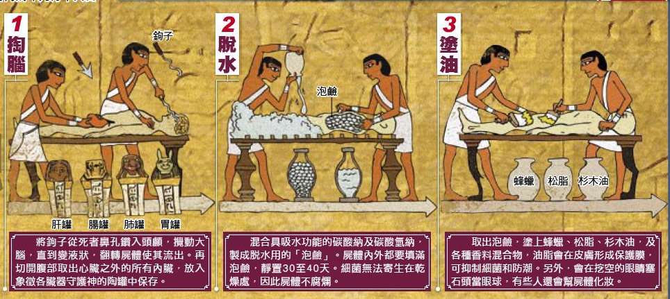 木乃伊是指利用人工防腐方式可以長久保存的屍體。古埃及人認為人死後,必須經過眾神的靈魂審判,通過審判者就可以復活,所以在死後必須保有完整的身體,否則復活的靈魂將無所依附。基於對「死而復活」的信仰,古埃及人對屍體保存及喪葬禮儀,都有一套非常講究的程序。