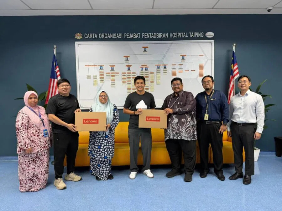 (太平31日讯)在副首相拿督斯里法迪拉外交事务官梁子祥的协助下,太平医院获捐赠两台笔记本电脑,并希望通过这项捐赠,能够协助医院加速数码系统的落实,为医院员工及太平市民带来更高效、更优质的医疗服务。