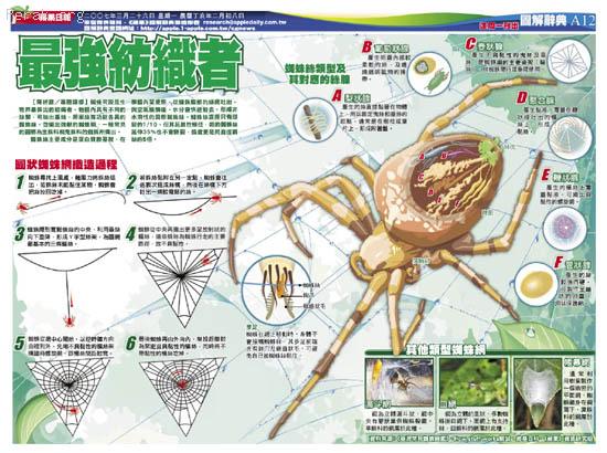 蜘蛛可說是生物界最傑出的紡織者,牠體內具有不同的絲腺,可紡出垂絲、卵巢絲等功能各異的蜘蛛絲,並織出強韌的蜘蛛網,一般常見的圓網為金蛛科和鬼蛛科的蜘蛛所織出。