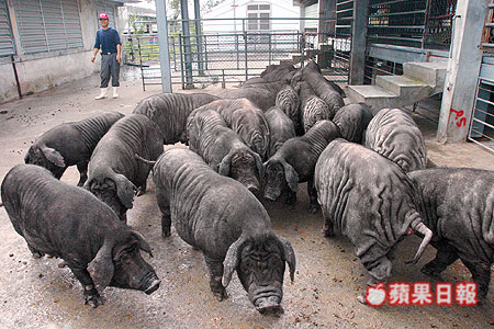花蓮種畜繁殖場保護台灣在來種桃園豬正進行繁殖計劃,場長林正鏞說今年5月間將會有一批桃園豬(圖1)誕生,桃園豬因長相奇特、皮有如沙皮狗,又被稱為「沙皮豬」,每頭成豬身上至少有9層皺皮(圖2,圖為腰部),就連頭臉也滿是皺紋,但桃園豬肉質不具經濟價值,目前全台剩不到1000頭,僅做保種及研究之用。