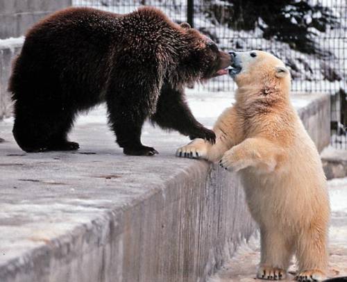 灰熊和北极熊,大部份时间本来各有地盘。御寒力较高的北极熊,集中聚居在北极圈高纬度极寒之地;灰熊则生活在北极圈周边,像加拿大西部、美国阿拉斯加与爱达荷州和蒙大拿州等西北州分。但全球暖化令北极冰融变暖,灰熊活动范围得以向北扩展。