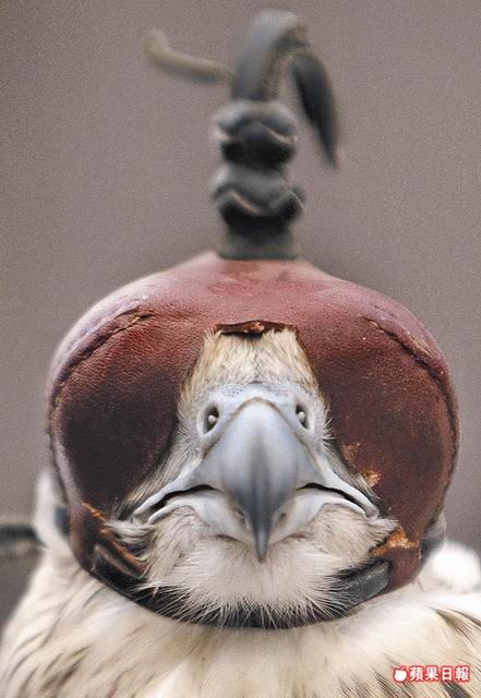 林文宏指出,猛禽看不見、視線被遮蔽時,情緒反而安定,羽毛、腳不會因掙扎受損傷,因此訓鷹人會製作皮頭套覆蓋在牠們的頭、眼。為凸顯英姿,訓鷹人還會在頭套上裝飾花邊、圖樣等,像極古羅馬軍人頭盔。