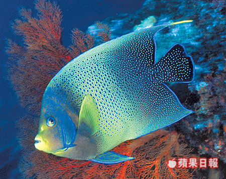 俗名「藍紋神仙魚」的疊波蓋刺魚(圖),最近在屏東海生館繁殖成功,創下全球第一次在人為環境中自然產卵及孵化的紀錄。這種魚個性孤僻,有強烈的領域觀念,若非交配期雄雌魚也會互咬,因此豢養的疊波蓋刺魚很難繁殖成功。