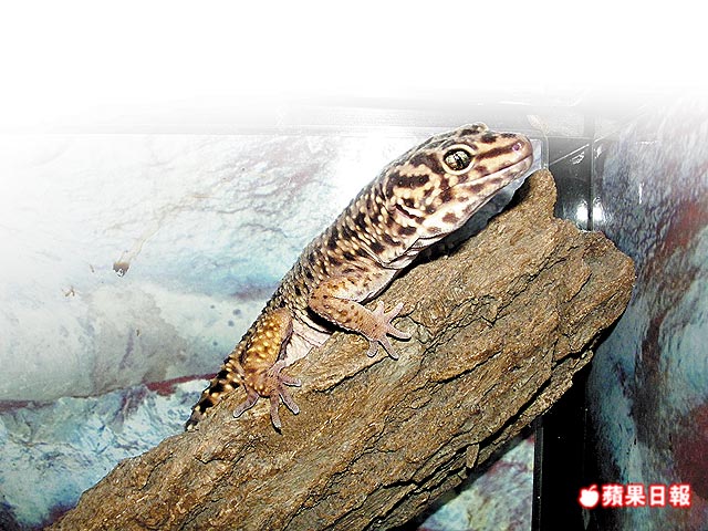 近日有民眾將一隻無法飼養的豹紋守宮(圖),送給桃園縣自然生態教育學會收容,大眼睛的牠棲在枯木上還會不時眨眼,參觀的小朋友都大叫:「卡哇伊!」爭相拍照。自然生態教育學會理事長陳仰聖表示,豹紋守宮主要產地在伊朗、阿富汗,性情溫馴,近年變成民眾愛飼養的寵物,每隻約千元。